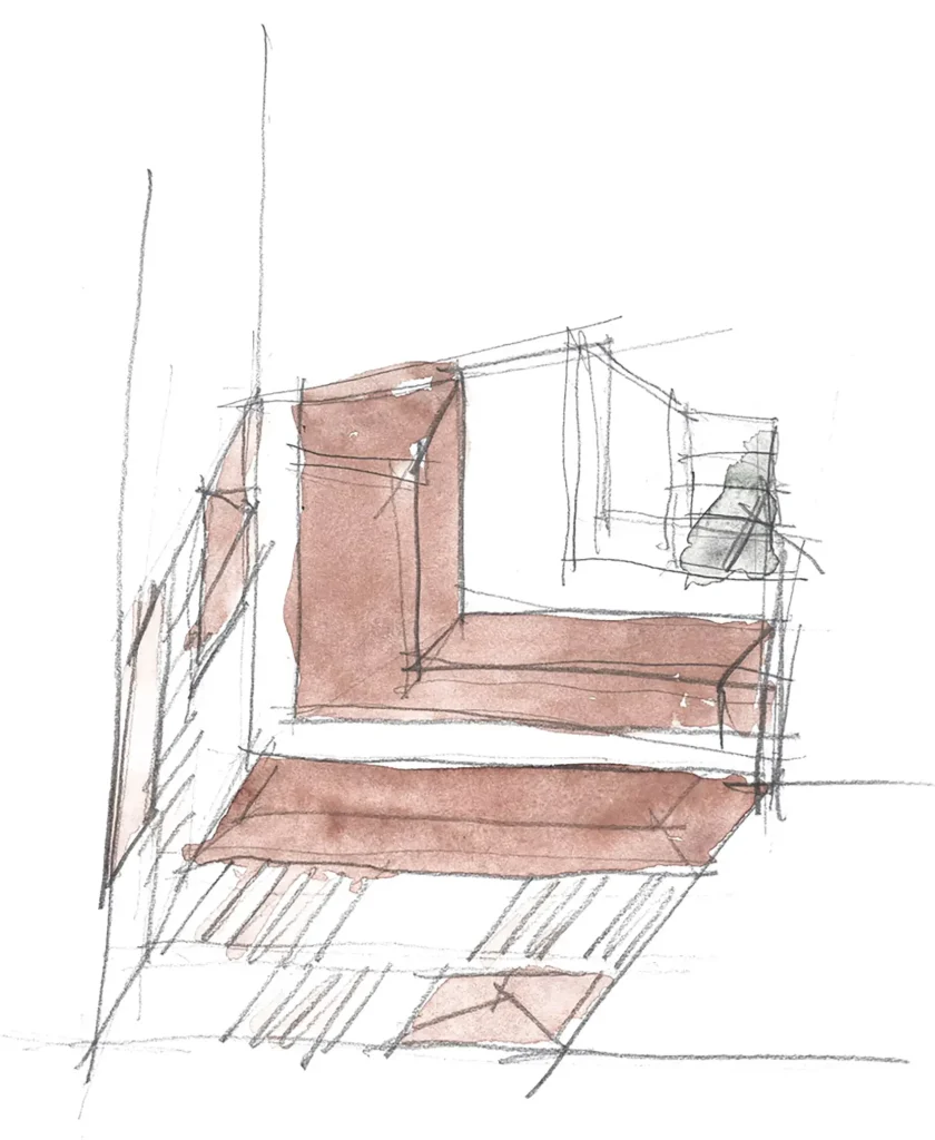 The facade is the result of the combination of a few large white cloths of krion, some splayed arched of IROKO wood, and the slats, which, according to their position, texture and materiality varies. All these elements are arranged within a sealing system that binds the whole. The divisions of the facades and the combination of materials and textures create a fixture that reminds of the typical subdivisions of the vegetable garden.Perforations in the surrounding