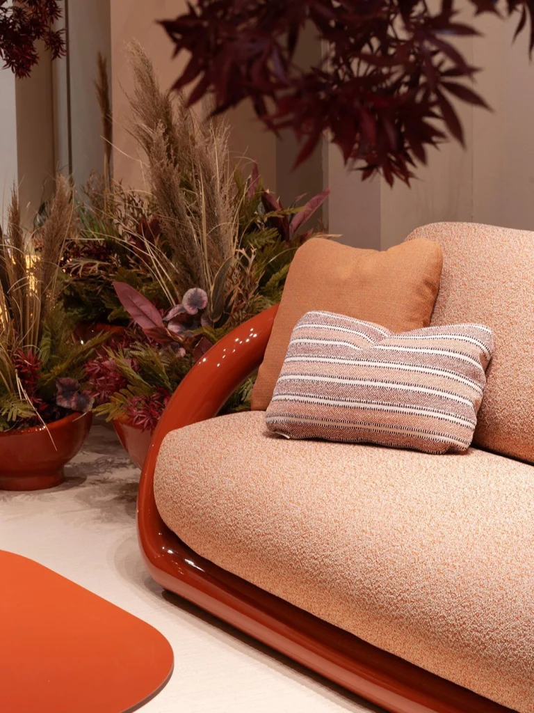 El stand se planteó desde la ausencia de artificio: una atmósfera abierta, cálida y precisa, donde el producto asumía el protagonismo. El color aparecía en las piezas, en los tejidos, en la madera maciza y en las curvas del polietileno, mientras la arquitectura del espacio permanecía en segundo plano. Una decisión coherente con una visión del diseño en la que el entorno, los objetos y la experiencia forman parte de un mismo ecosistema.